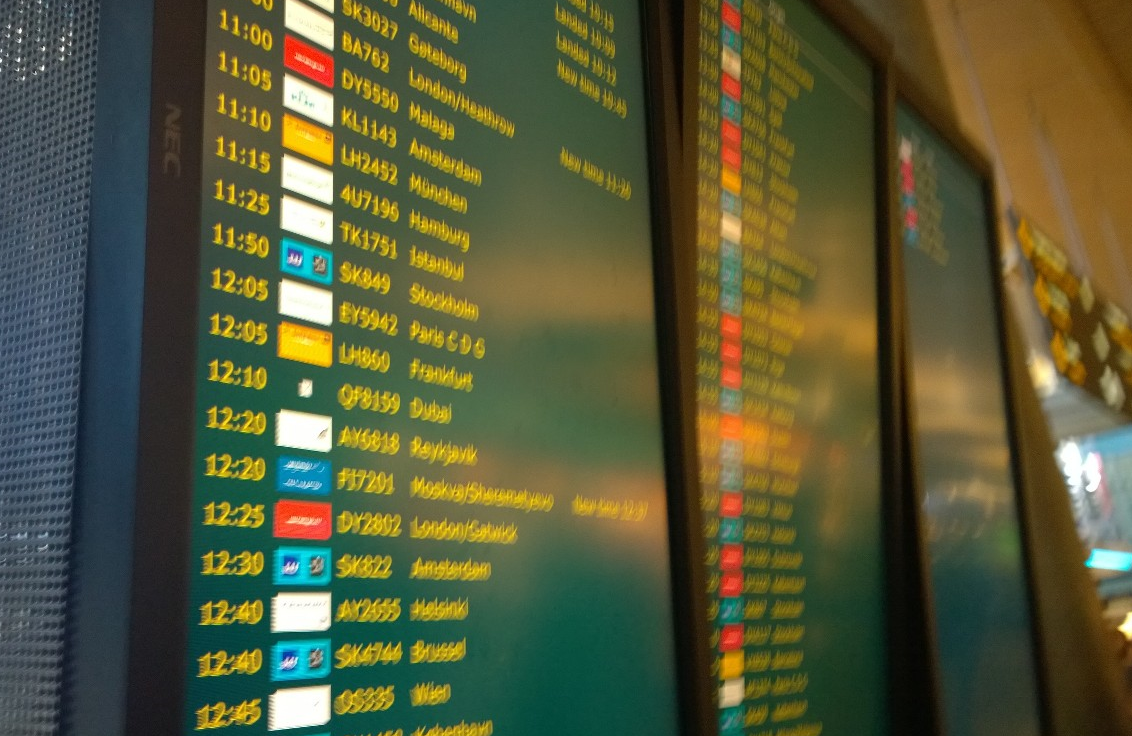 På OSL er byttes som sagt ikke logoer når codeshare-kodene vises. Den samme svarte firkanten med rød x vises uavhengig av om det står QFxxxx eller EKxxx.