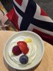 Gratulerer med dagen! Første par oppdrag utført, dvs flagg hengt opp og fløte til kake kjøpt inn på Joker som heldigvis ikke var tomme. Nå kaffepause. Gårsdagens ordning av uteplassen ble forsinket til fordel for østers og chablis med naboer, så nå ligger det an til at første del av dagen ikke blir viet taler og korps, men kosting og vasking, får satse på at en rekker det før ettermiddagens evenementer