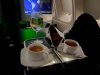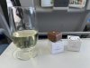 Når vi ble ombooket ble vi automatisk plassert på 10EG, og når man først får fly 747 er det kjipt å sitte på main deck foruten rad 1 i snuten. Sjekket kjapt ut på AF om det var ledig på rad 1 eller på loftet. Rad 1 var opptatt, men det var litt ledig oppe. Fikk ikke flyttet oss selv i LH appen, ble da en tlf til Sas. Fikk heldigvis ordnet oss 85HK, nest siste rad på høyre side. Tok 11 min til velkomst glasset var på plass. Nøtteposen var forhåndsplassert. Sånn hardwear messig er jo dette en nedtur Savner bordet på SK Etter take off fikk vi utdelt meny