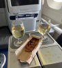 Som dere sikkert har skjønt av de 2 foregående postene, så er jeg online ombord nå. Ikke helt gratis Vi har diskutert litt frem og tilbake om vi skal ta oss bryderiet med å kreve Sas for refusjon, siden vi ville hatt gratis WiFi på CPH-BOS. Mulig jeg slenger det med som en kommentar når jeg ber om poeng for opprinnelig booking. Fikk servert litt ost og oliven Litt etterpå ble det litt mer bobler Og første flaske var tom. Vi er totalt 20 pers her i 2.etg,