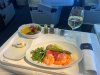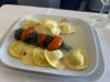 Dinner is served Begge gikk for reker til forrett God knask i de rekene Jr valgte asparges med kjøtt til hovedrett Kjøttet var godt og asparges ble igjen. Jeg gikk for dumplings eller mer pasta som jeg kaller det. Men maten smakte bra. Begge valgte aprikos kaken til dessert Og litt sjoko til ekstra dessert Bra måltid dette. Jeg hadde jo fått samme meny på sas som jeg hadde til JFK i begynnelsen av April. Veldig greit å teste noe annet