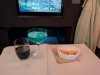 Var blant de siste inn på flyet, men fant meg fort til rette på 1H. Det er definitivt mer benplass her. At skjermen oppleves litt mindre var ikke noe problem for meg denne gangen i hvert fall ettersom jeg hadde med egen underholdning på tabletten min. Litt rushed champagne servering på meg siden jeg kom sist, men vi taxet 10 min før oppsatt avgangstid, så det var jo nice. Menyene for returen var litt annerledes enn på utreisen. Tok bilde av de to sidene med differanse (matserveringen): Frokosten virket faktisk fristende, men jeg ba om å ikke bli vekket for å prioritere søvn, og evt heller spise i loungen etter landing. Liker den "The Polar Pioneer" drinken! Sikkert fordi jeg elsker blå drinker, og den har champagne i seg Gikk for and til forrett, og kylling igjen til hovedrett. Som vanlig smakte det veldig godt, selv om hovedretten ikke visuelt så like bra ut som forretten: Fikk hele utvalget av dessert. Den sitronterten var digggg! Videre må jeg takke IF nok en gang. Har jo lest her at SAS tidligere tilbød en tynn madrass for å sove på, men at den er utgått. Samtidig har de den visst i "restelager" på noen fly. Kanskje ikke nå lenger? Jeg spurte i hvert fall etter én, og dansken svarte at "nei det har vi dessverre sluttet med, men jeg tror faktisk det er lastet en på dette flyet - la meg sjekke" før han kom tilbake med en madrass til meg. Det er jo ikke verdens tykkeste madrass akkurat. United sin er sikkert dobbelt så tykk og behagelig, men alt hjelper. Våknet dog etter bare en time eller to, sinnsykt varmt i kabinen. Så at flere sov uten dyne, så tolket det som at det ikke bare var meg. Spurte derfor danskene igjen om de kunne skru ned tempen litt, og det fikset de ganske fort! Så det skader aldri å spørre Etter det fikk jeg sove av og på resten av flighten. Skippet frokosten og endte opp på 5.5 time søvn i følge Garmin-klokken. For dette setet (1H) synes jeg at selv om det er mer benplass, så virker det litt trangere rundt overkroppen? Det hjalp en del da jeg skjønte at jeg kunne ta ned armlenet. For meg som har det helt fint med "fastlåste" ben i f.eks en sovepose, setter jeg mer pris på å kunne bevege overkroppen for å kunne snu meg lettere ila natten. Her er vi alle forskjellige, og uten tvil så er det veldig god plass på 1H. En liten "secret SAS hack" er jo at de sperrer av toalettet og dermed hele gangen forran på høyre side for SAS Crew only. Så det blir lite trafikk, og ingen folk hengende ved setet til de fremst på denne raden. Sånnsett er nok 1H veldig privat, selv om den ligger "åpen" ut mot midtgangen.