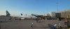 Tok en tur ut på terrassen, hvor det var litt av hvert å se. Blant annet "mitt" fly HB-JNB som akkurat hadde landet etter en tur til San Francisco. Jeg ble litt fascinert av at jeg kunne se merker etter et høyt antall koblinger med gangbroer rundt i verden. På tide med en vask? Eller må det males over?