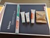 Så er jeg luftbåren og småbrisen etter å ha drukket Champagne på bakken. Det var også varme nøtter. Jeg er imponert over at kapteinen tok seg tid til å småprate med alle i First. Litt forskjellig småsaker ventet i setet: - Amenity kit (det er veldig billig og plastaktig) - Tøfler - Vann I tillegg ble det delt ut meny, pysj (den ser lilla ut på bildet under men er mørkeblå) og litt mer fra en kurv. Her er litt bilder - noen delvis ute av fokus