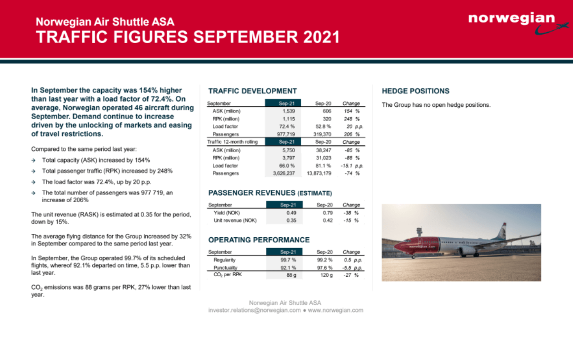 Hjem Nyheter Flyselskaper Norwegian med fortsatt økning i passasjerer image image 6. oktober, 2021 by Redaktion Del