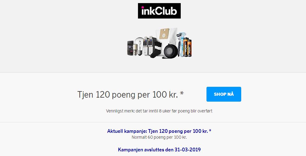 Hjem Nyheter Bonusprogrammer Tjen doble poeng med InkClub InkClub – Norge InkClub – Norge 26. mars, 2019 by Redaktion Del